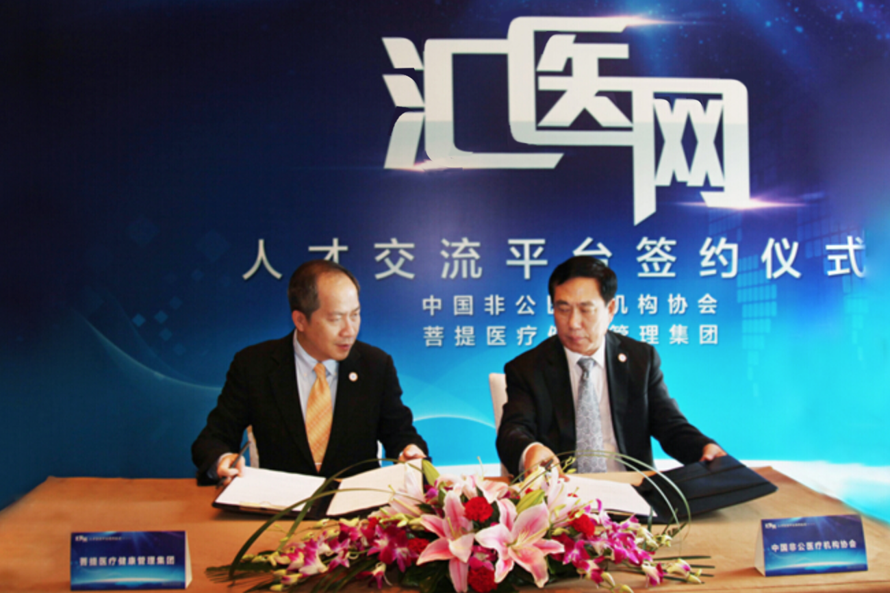 为解决民营、县级地市级公立医院医生资源匮乏的问题,加快医生多点执业政策落地,9月18日上午,菩提医疗集团与中国非公立医疗组织协会在北京举办“汇医网”人才研讨平台签约仪式,推行医疗人力资源服务计划。协会副会长赵书贵先生、郝德明先生,菩提医疗集团董事会主席付钢先生、CEO宋青女士、COO林振坤先生及集团公关部总监张圆女士共同出席了签约仪式,同时参会的还有20家行业媒体。